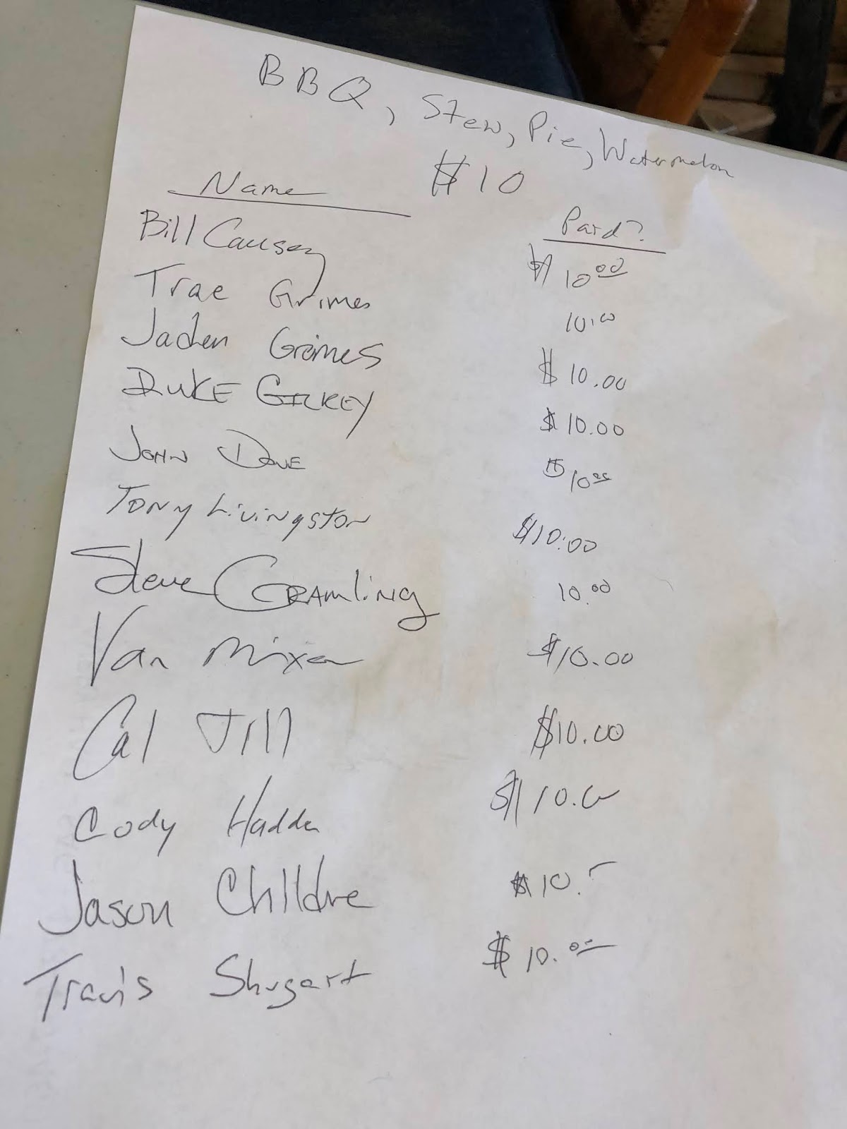 Of course, I had to maintain one of our newer traditions, having Laverne Howard's fried pies with our BBQ lunch! I placed an order with her ahead of time and picked them up at the farmers market that morning before the ride started. Woo hoo! Fried pies! A = apple, P = peach, SP = salt & pepper (just kidding! SP = sweet potato)